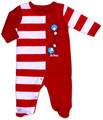 此次召回的产品为带袜子的连体睡衣,红色/白色条纹,衣服上绣有Dr.Seuss'sThing1和Thing2字样。该款连体衣为100%棉质。销售标签上印有产品编码FTSLP-C22-9M和UPC码014292981930。